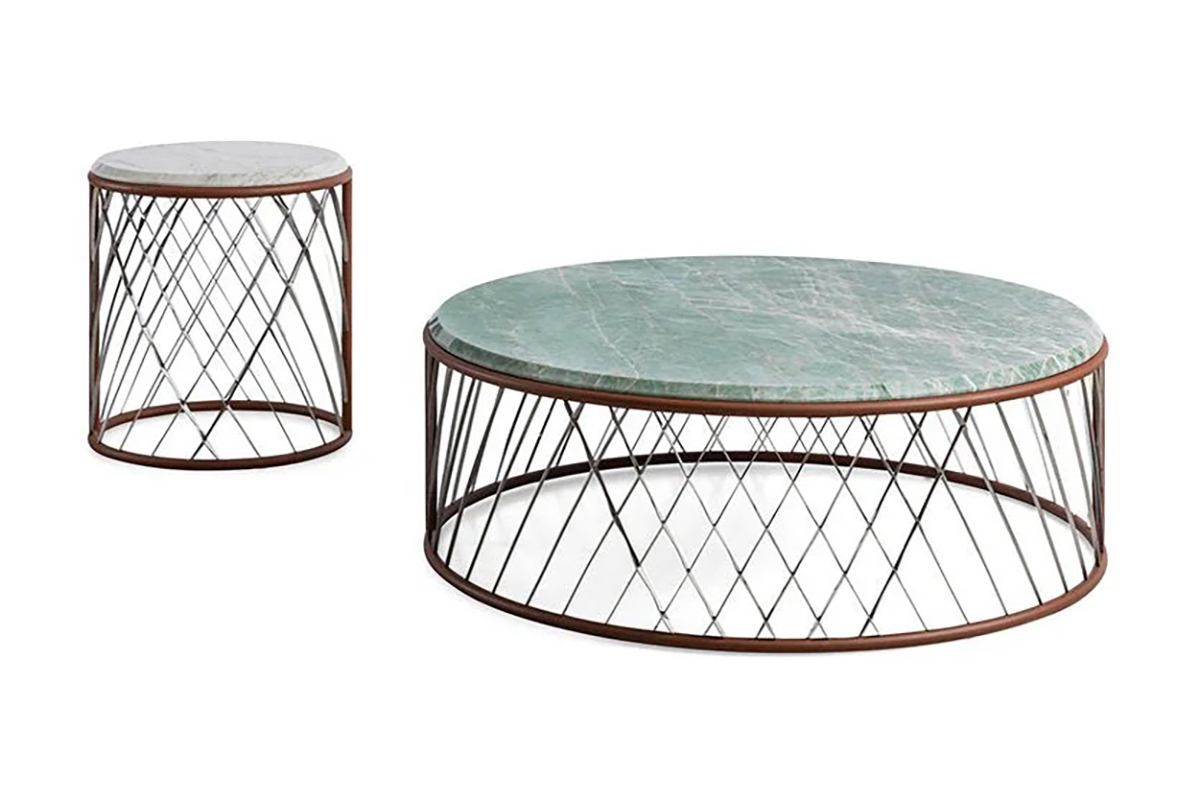 The Solstice side tables distil Bentley’s design language into a silhouette of effortless elegance. A polished steel base, echoing the structural geometry of the iconic grille, supports a circular marble surface finished in vivid Emerald Green or ethereal Patagonia.