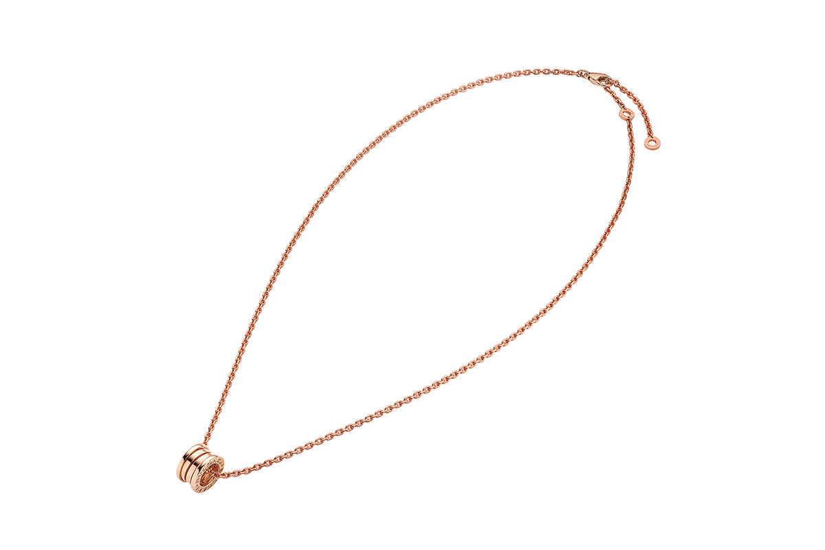 Compact yet striking, this 18k rose gold necklace from Bvlgari draws inspiration from the architectural beauty of Rome’s Colosseum. Its pendant showcases a spiralling formation of cascading discs, creating a bold yet refined unisex statement.