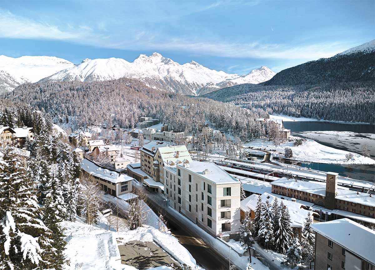 Just a two-minute walk from St. Moritz train station, the hotel marks a new chapter in Alpine hospitality. Set in a prime location with panoramic views over Lake St. Moritz, it seamlessly blends its historic Art Nouveau grandeur with contemporary design and visionary service with a cosmopolitan touch.