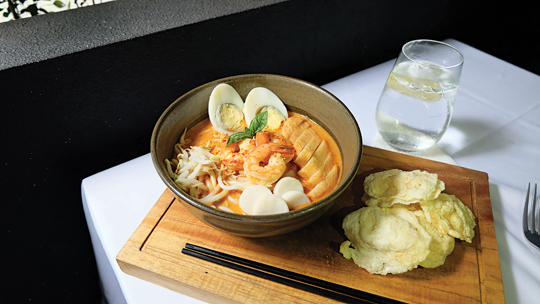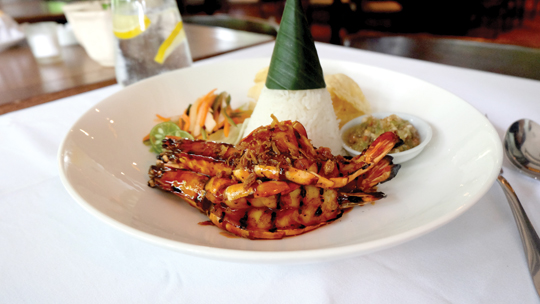 Sumptuous Western classics and comforting Asian selections grace Ivy Restaurant’s comprehensive menu. For starters, the classic Caesar salad is a popular item among the health conscious. Gorgeous fresh leaves of romaine lettuce are dressed with generous slices of shaved parmesan, accompanied by homemade Armenian lavosh bread and finished with a perfectly soft-boiled organic egg. For those looking for a local twist on a starter, the Tempe Goreng comes highly recommended by the chef – thinly sliced crispy soybean cakes are fried to golden perfection and served with sweet soy sauce and a choice of fresh chilli or tantalising house-made sambal matah. Guests craving something hearty are urged to try Ivy Laksa. The comforting bowl of coconut curried udon is accompanied by slices of luscious fish cake, springy fish ball and a generous helping of prawns. Locals who need their rice fix can try the udang bakar madu – juicy large tiger prawns grilled to sticky unctuous perfection with honey, served with a hearty portion of steamed white rice and a side of sambal matah.