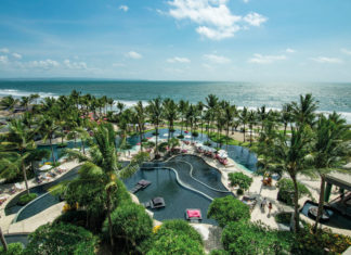 Nestled along the pristine white sand beach of Nusa Dua, Grand Hyatt Bali emerges as a collection of four cultural villages nestled within an...