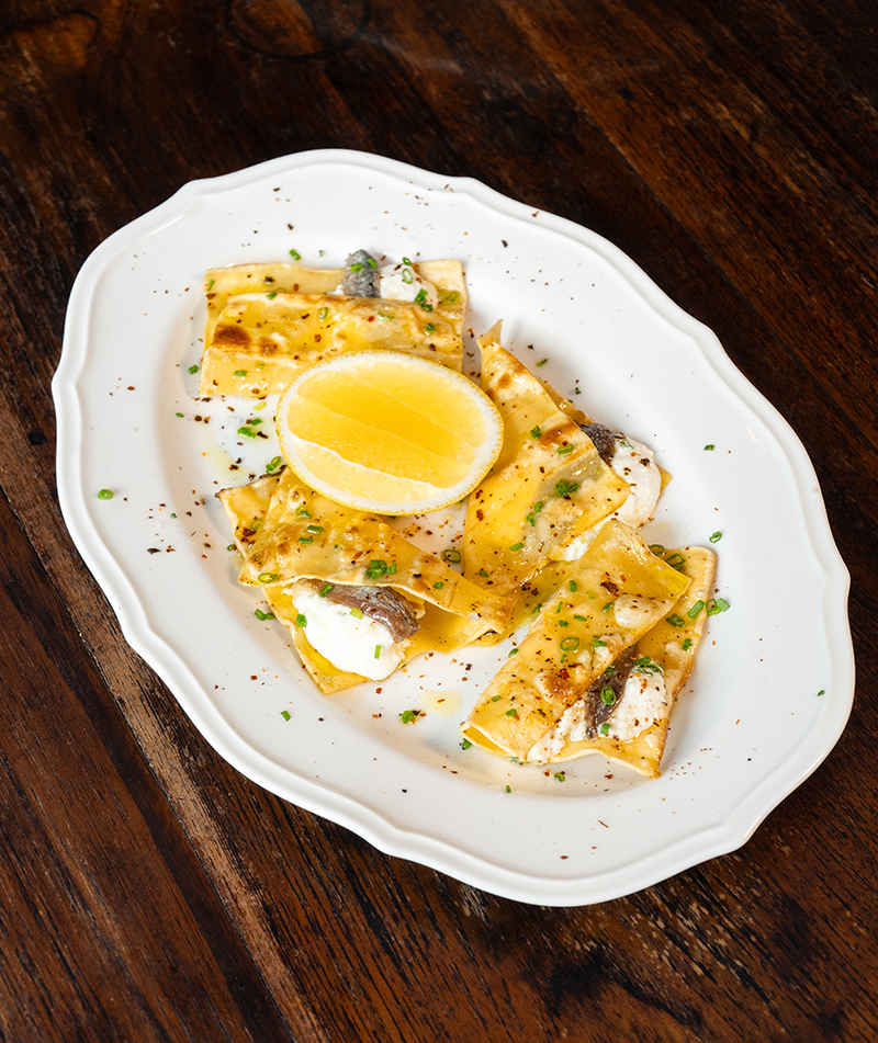Grab a seat by the bar to get a clue as to what’s on the menu, since it’s the perfect vantage point to see the kitchen team in action. Nothing is hidden from view, from unctuous sauces simmering in pots to the fresh pastas (handmade every single morning) tossed in them right before arriving in front of diners. Served as an antipasto, the Fazzoletti ‘Grano Arso’ continues to become a crowd favourite, layering sheets of charcoal-grilled pasta with a ricotta and anchovy filling.