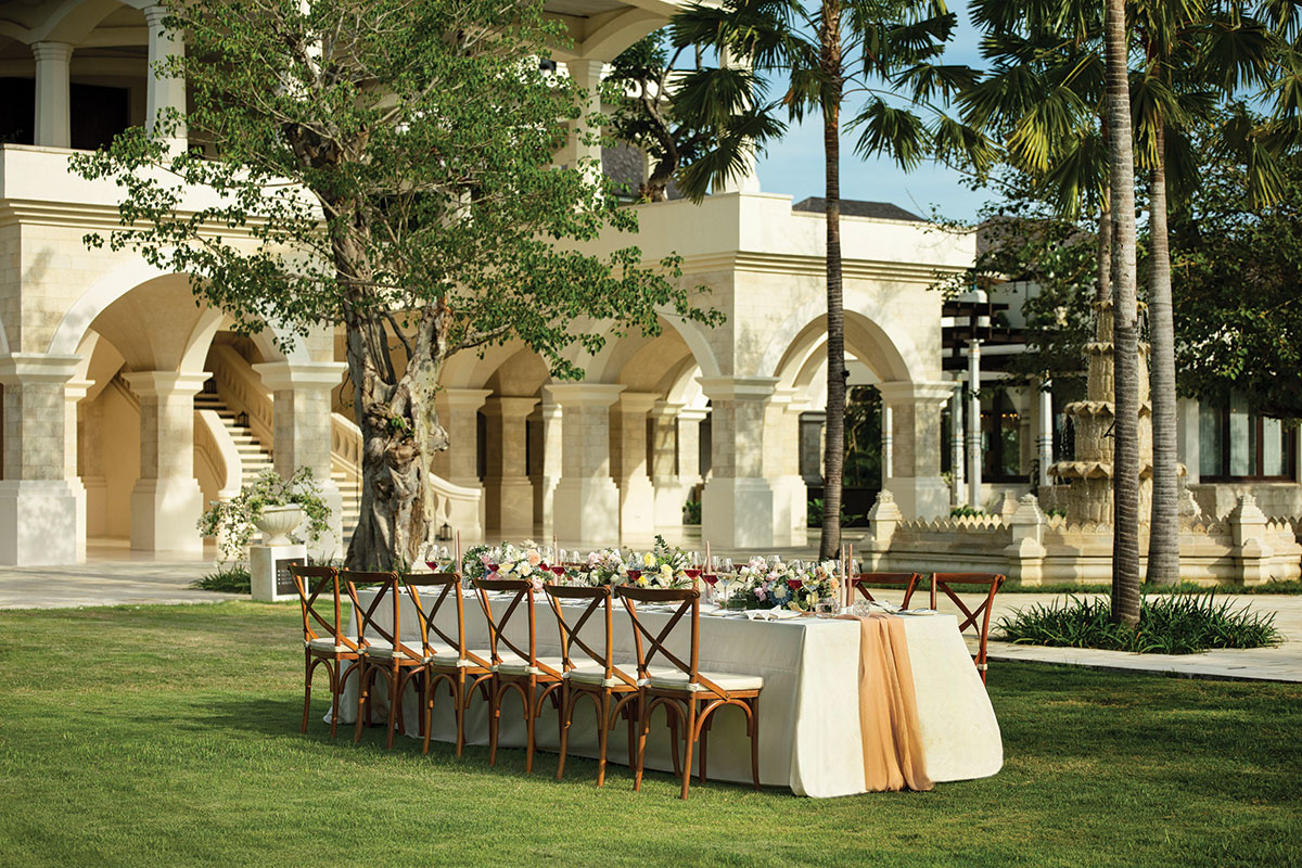 Located on the Trowulan level, the main ballroom offers 325sqm of elegant space, perfect for hosting large celebrations. Guests also have the option of an exquisite private dinner at AKASA, perched atop a cliff with astonishing views of the ocean. Participate in a traditional blessing ceremony at Tilasan, Maja Lounge Terrace or Mantra Pavilion, or choose the most unique of the resort’s venues — the picture-perfect replica ruins of Trowulan, the site of the eponymous capital city of the Majapahit Empire.