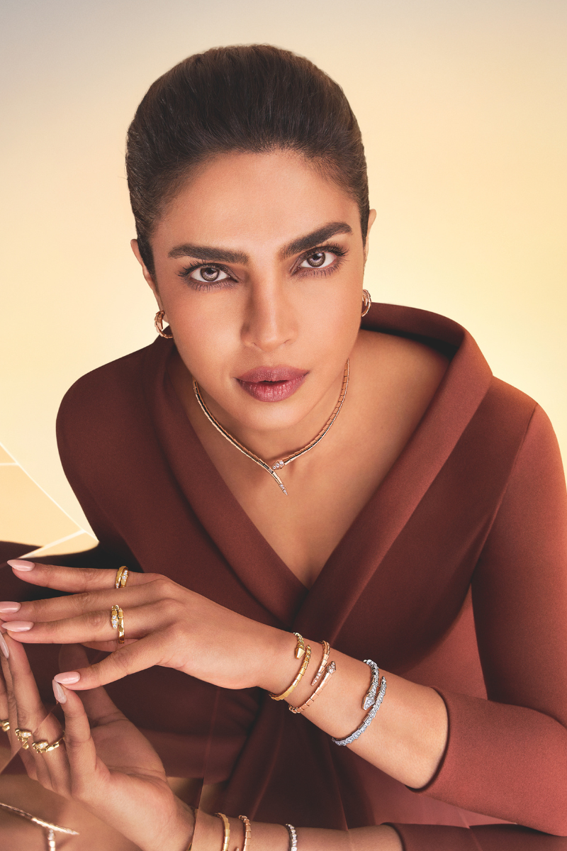 This new chapter arrives with a global Serpenti campaign launching in January 2026, photographed by Chris Colls. The campaign features Anne Hathaway and Priyanka Chopra Jonas as the faces of Serpenti. Visuals showcase transformation using light, reflection, and motion. Anne Hathaway highlights Serpenti Viper designs, while Priyanka Chopra Jonas presents the Tubogas silhouette, each representing distinctive aspects of the Serpenti icon.