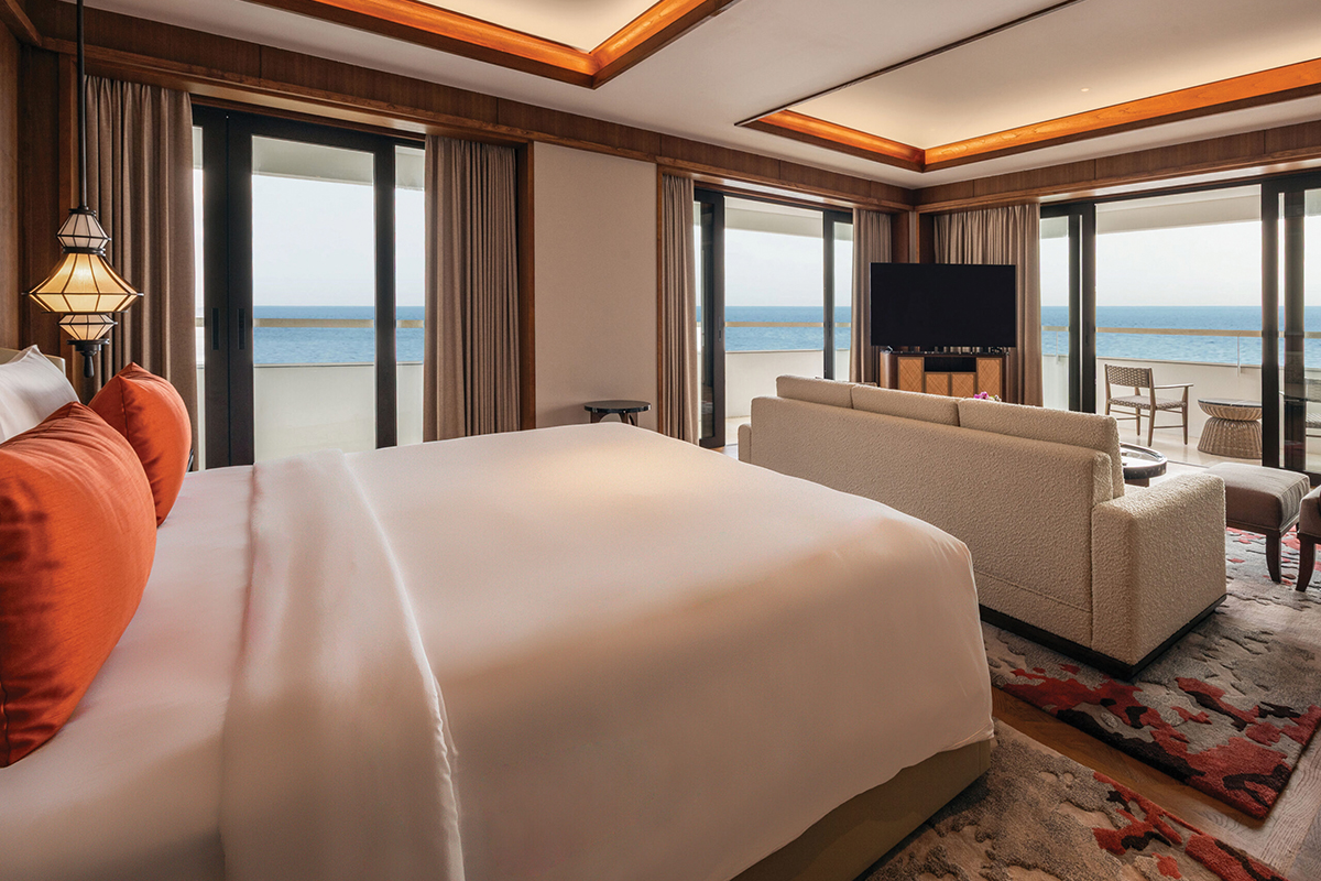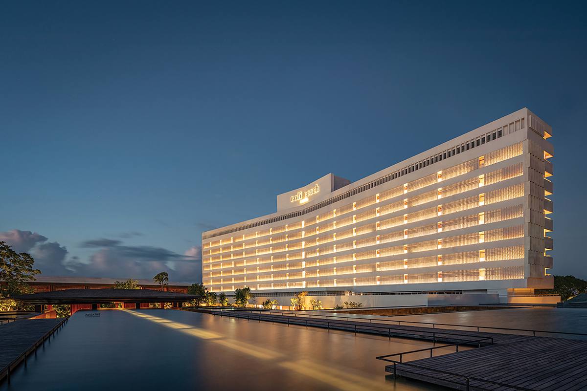 Located in prime beachfront land within The Sanur Special Economic Zone for Health and Wellness, the hotel offers 273 ocean-view rooms and suites. The restoration project, led by architects Gregorius Supie Yolodi and Maria Rosantina, preserves the essence of the original structure while enhancing it with contemporary design and functionality. The iconic tower retains its granite-textured and marble-painted façade, a timeless symbol of heritage and legacy. At the same time, the new tunnel-inspired lobby introduces a sleek architectural statement that complements the building’s heritage.