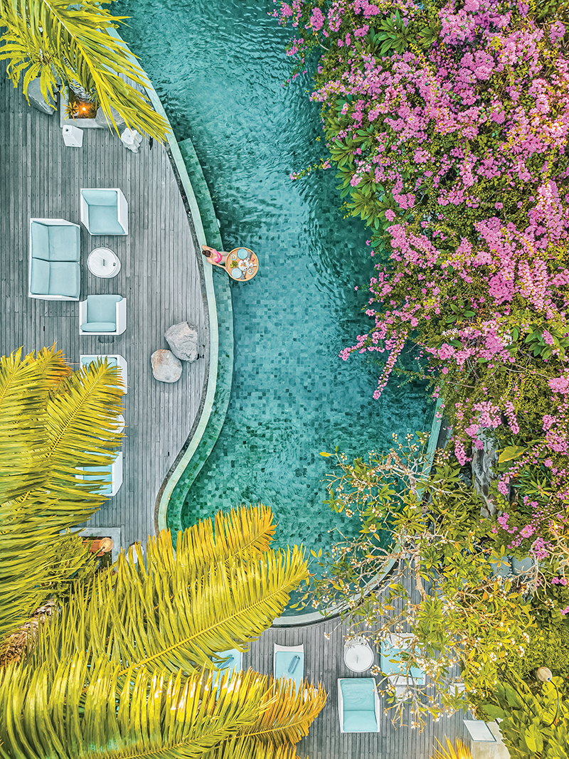 Nestled amid lush tropical greenery, each villa serves as a serene sanctuary where romance flourishes. Spacious bedrooms open to private pools, while thoughtful touches, from turndown services and floating breakfasts to bespoke in-villa dining, ensure every stay feels special.