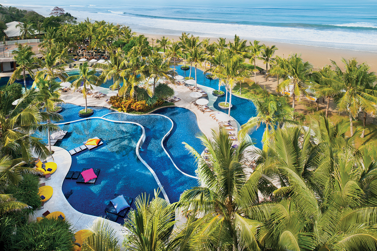 Located along Bali’s Petitenget Beach in Seminyak, W Bali – Seminyak offers a lively yet luxurious resort experience tailored for both leisure and business travellers. The resort comprises 233 rooms, suites and villas, including ones with private pools and expansive outdoor terraces. Its interiors feature a palette inspired by rice paddies, sunsets and limestone textures, while Balinese art pieces and natural materials anchor the setting in place.