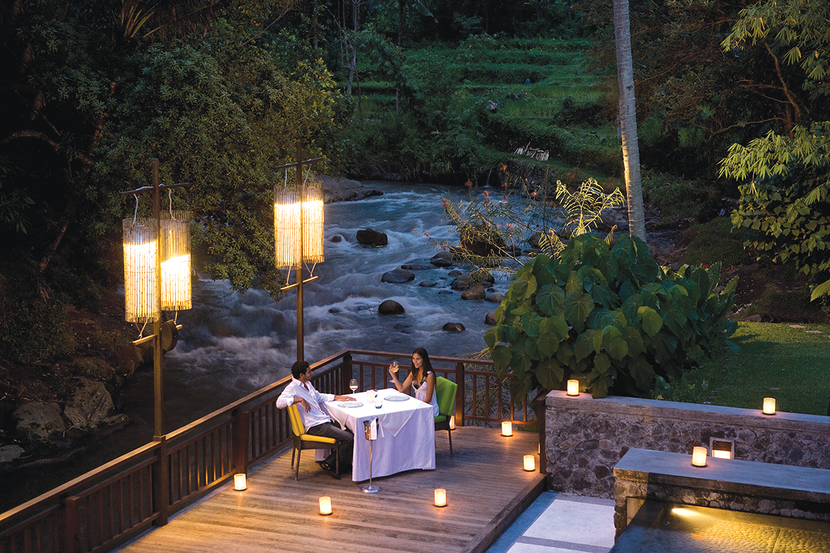 Dining at Swept Away Restaurant captures the resort’s spirit of calm and connection. Guests can enjoy everything from riverside lunches to romantic dinners with its signature 100 Candles Dinner, one of Ubud’s most iconic dining experiences.