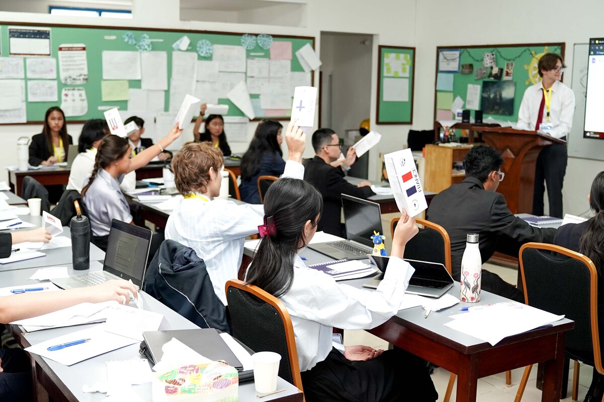 “Model United Nations gives students rich opportunities to build both subject knowledge and practical skills,” said Alan Furnas, Diploma Programme Business Management and Middle Years Programme Individuals & Societies Teacher. “Students often wrestle with research, writing, collaboration, public speaking, and representing a country’s perspective, challenges that directly strengthen the International Baccalaureate Approaches to Learning, especially research, communication, social, and self-management skills. MUN also offers meaningful CAS (Creativity, Activity, Service) through leadership, teamwork, and reflection.”